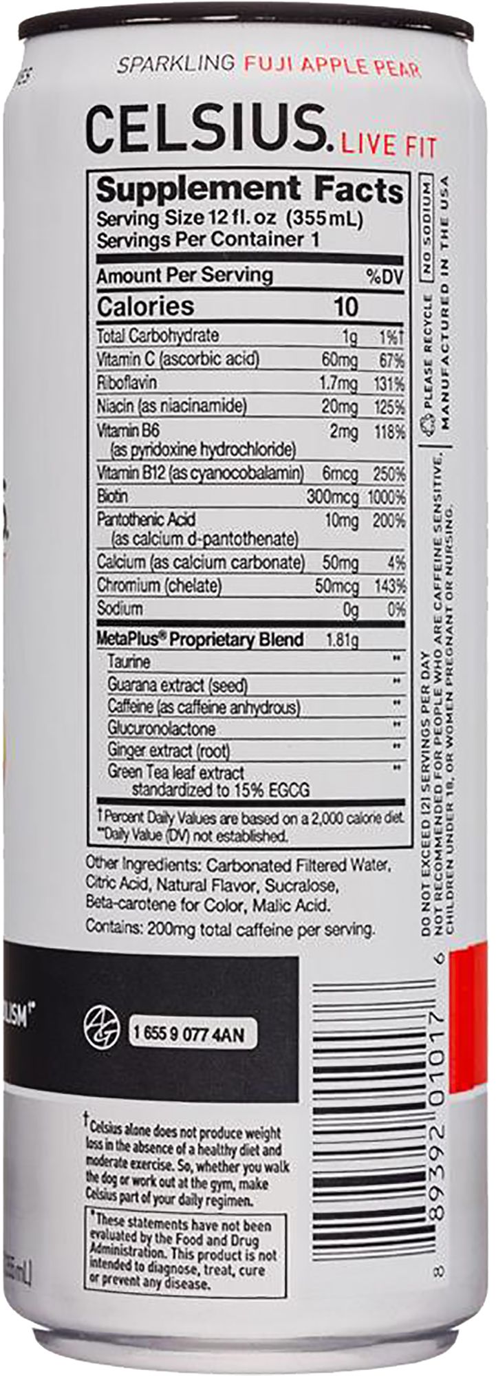 Celsius Sparkling Fuji Apple Pear Energy Drink 12 Fl Oz Vegan Black Market